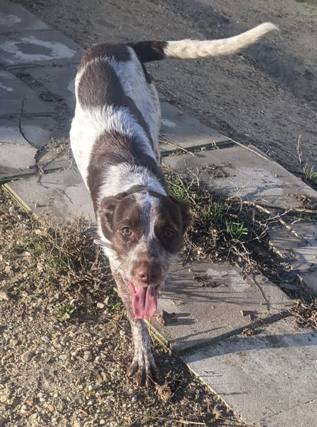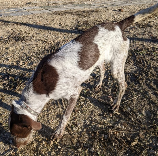 Ariel ist eine rundum freundliche, verspielte und gutmütige junge Hündin, die voller Neugier und Lebensfreude steckt. Sie begegnet Erwachsenen und Kindern sehr anhänglich und aufgeschlossen und genießt jede Form von Aufmerksamkeit und Zuwendung. Auch mit anderen Hunden zeigt sie sich sozial und verträglich. Besonders schön ist, dass Ariel auch mit Katzen gut auskommt. Dennoch sollte man sich bewusst sein, dass in ihr vermutlich auch typische Eigenschaften des Deutschen Drahthaars stecken: Diese Hunde gelten als intelligent, bewegungsfreudig und aufmerksam.Mit Jagdtrieb kann gerechnet werden.