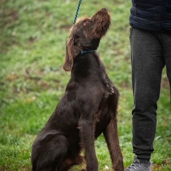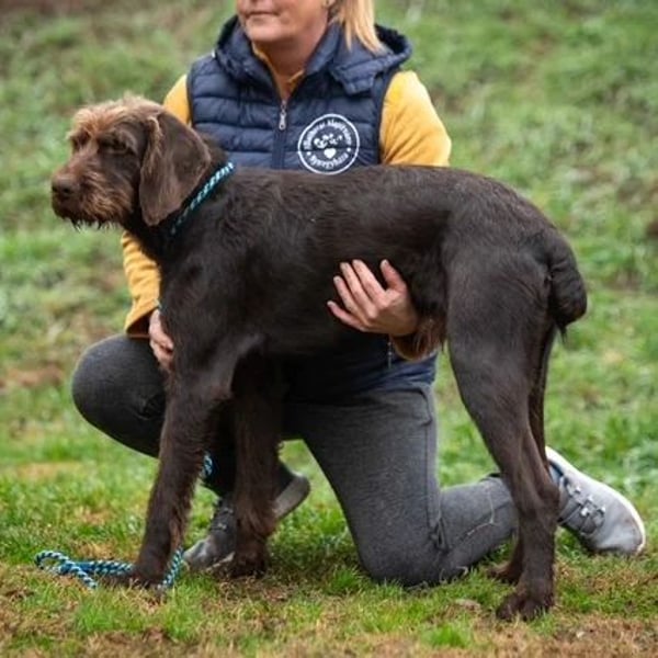 Später einmal wird er sicherlich die typischen Deutsch-Drahthaar Eigenschaften zeigen: Er möchte sowohl körperlich als auch geistig ausgelastet werden. Apportieren, Fährtenarbeit oder andere Aufgaben, die seine Nase und seinen Kopf beschäftigen, werden ihm dann große Freude machen.