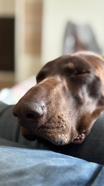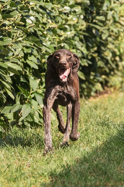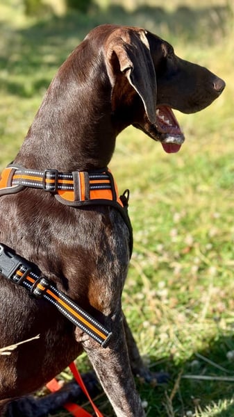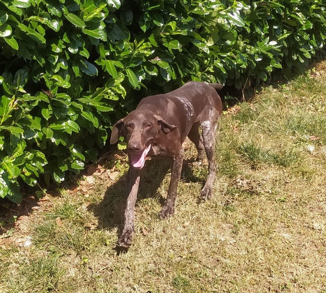 Als Deutsch-Kurzhaar bringt sie alles mit, was einen passionierten Jagdhund ausmacht: Aufmerksamkeit, Ausdauer und einen ausgeprägten Spürsinn. Kein Busch, keine Hecke bleibt unbeachtet – auf der Suche nach Hasen oder Federwild ist sie ganz in ihrem Element. Und dann sind die Ohren eben auch mal auf Durchzug – schließlich ist volle Konzentration gefragt.