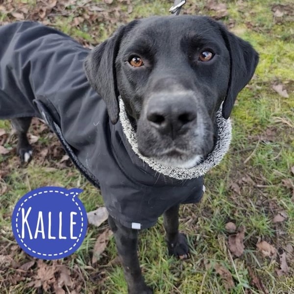 Kalle kennt das Laufen an der Leine, ist an Halsband und Geschirr gewöhnt und läuft kooperativ und angenehm mit. Er ist aufmerksam und arbeitet gerne mit seinen Menschen zusammen.