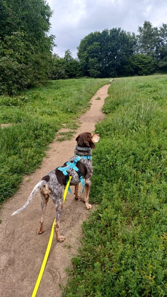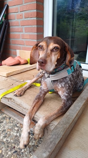 Draußen ist sie, obwohl sie schon eine kleine Omi ist, aktiv und freut sich über abwechslungsreiche Spaziergänge.