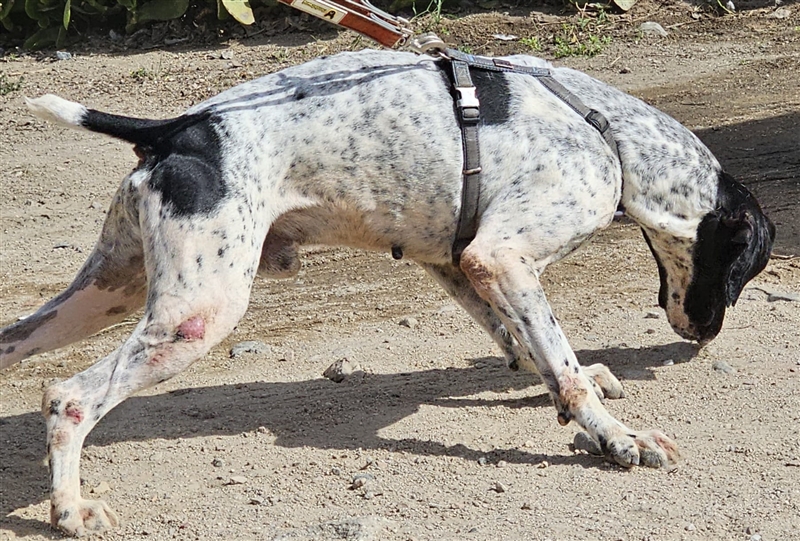 Die Leishmaniose hat ihn nicht verschont. Er hat viele offene Stellen und wird zur Zeit therapiert.