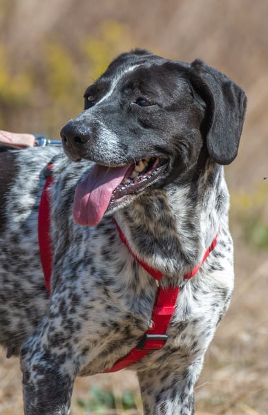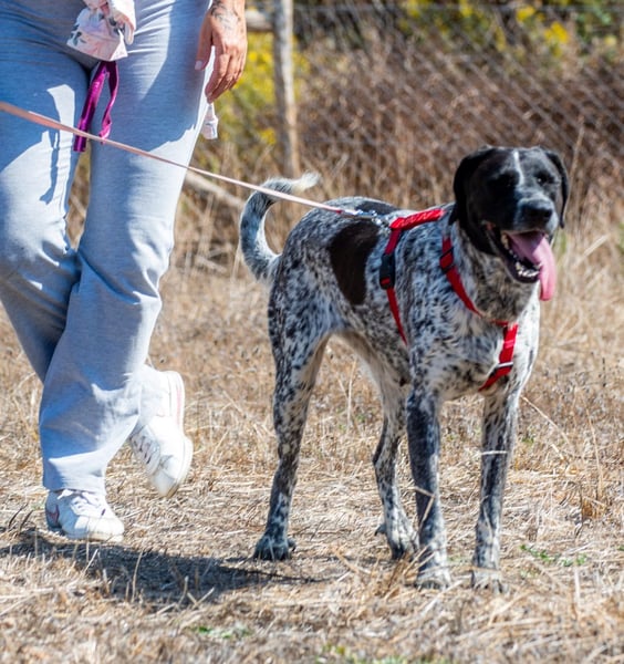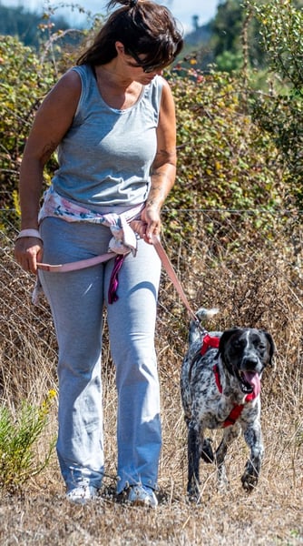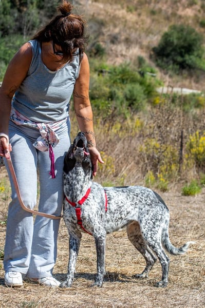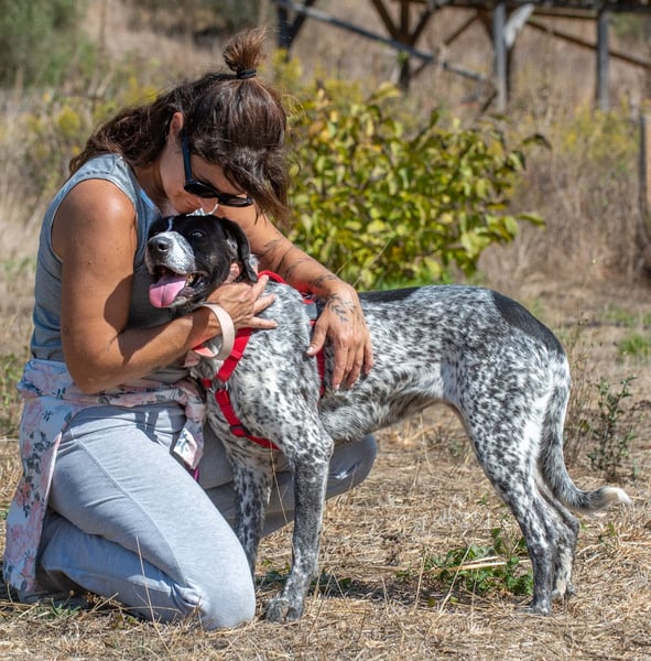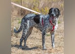 Dürfen wir vorstellen, Lucile, eine Deutsch Kurzhaar Mix Huendin, geboren 2021 mit einer Schulterhoehe von 60 cm. Sie wurde aus einem Zigeunerlager gerettet und lebt zur Zeit in einem privaten Tierheim in Portugal