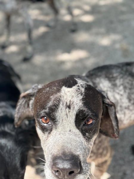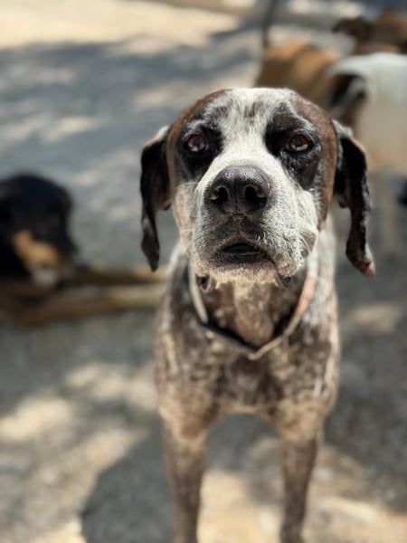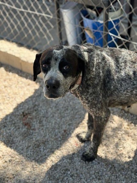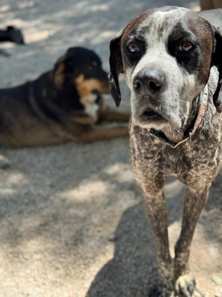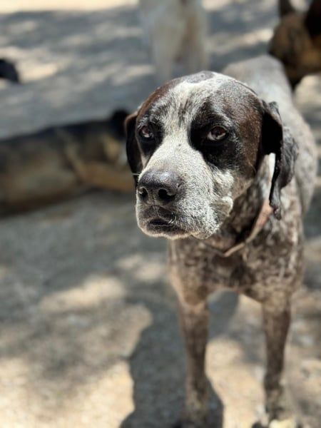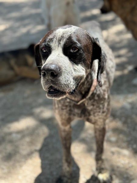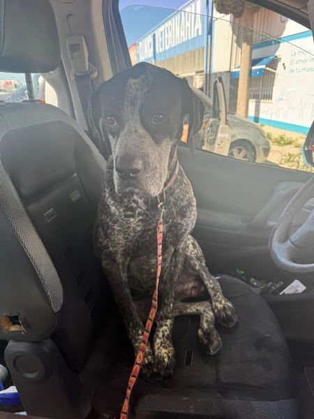 Lennon ist ein wunderschöner Deutsch Kurzhaar, geboren im Dezember 2016, etwa 60 cm hoch und ca. 28 kg schwer. Seit Mai 2025 lebt er bei Andres im Tierheim von Murcia– nachdem sein Besitzer verstorben ist. Dieser hielt den sanften Rüden als Kettenhund. Diese Zeit ist dank Andres vorbei- er nahm Lennon direkt mit und integrierte ihn in sein Hunderudel.