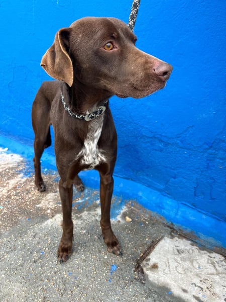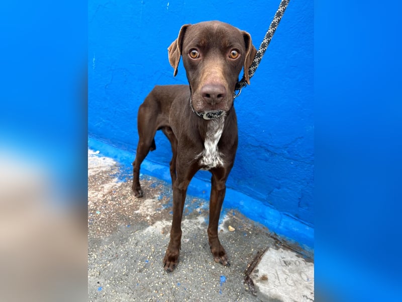 Deutsch-Kurzhaar sind natürlich Jagdhunde. Polo wurde wahrscheinlich nicht für die Jagd eingesetzt – im Grunde genommen sein Glück, denn jetzt darf er zeigen, dass sein Herz für ein liebevolles Zuhause schlägt.