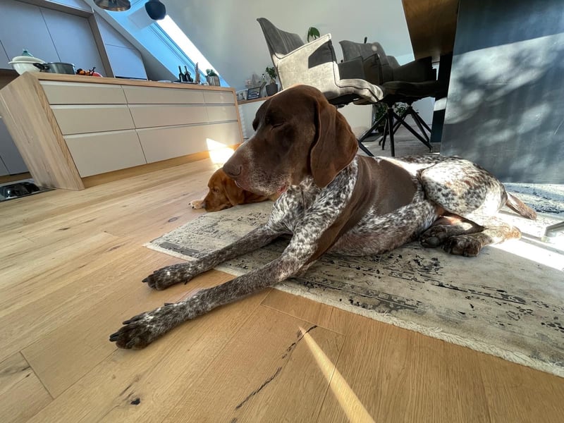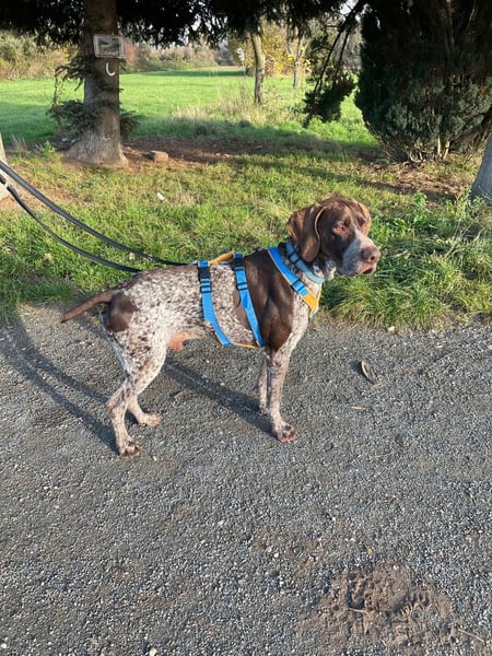 Als typischer Deutsch Kurzhaar ist Ragnar intelligent, sensibel und sehr lernfreudig. Er bindet sich stark an seine Bezugsperson und zeigt viel Potenzial, ein treuer Familienhund zu werden. Er möchte gefallen, möchte dazugehören – und genießt jede Aufmerksamkeit, die man ihm schenkt.