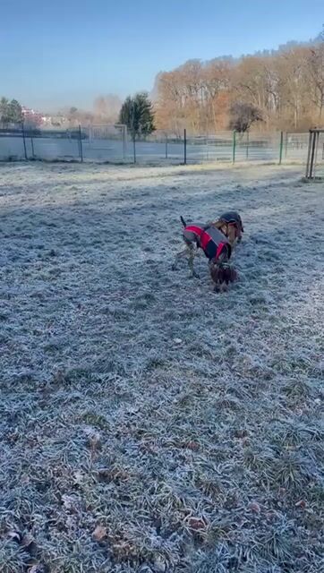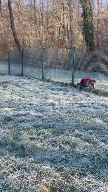 Natürlich bringt er nach seinem schwierigen Start auch einige Themen mit, an denen noch gearbeitet wird. Er ist sehr fixiert auf Spielzeug, weshalb man draußen gut aufpassen muss. Katzen und Kleintiere gehören definitiv nicht in sein Umfeld. Das ruhige Vorbeigehen an anderen Hunden übt er fleißig, und auch an Spaziergänge im Dunkeln muss er langsam herangeführt werden, da ihn dann noch viele Reize überfordern. Ragnar fällt das Alleinebleiben noch schwer – er fiept, wenn seine Menschen das Haus verlassen. In kleinen Schritten wird daran mit ihm geübt.