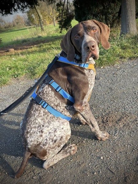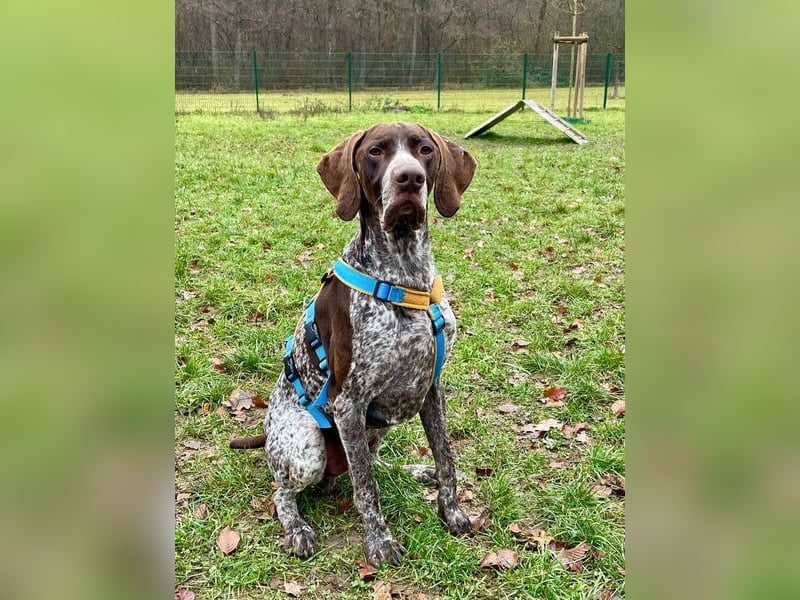 Typisch für den Deutsch Kurzhaar ist Ragnar klug, sensibel und hoch motiviert, Neues zu lernen. Er möchte gefallen, arbeitet aufmerksam mit und versteht neue Situationen erstaunlich schnell. Man spürt, wie sehr er sich seinem Menschen anschließen möchte – ein großes Potenzial für einen loyalen und liebevollen Familienhund.