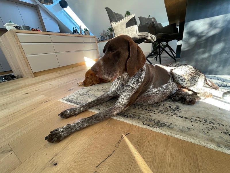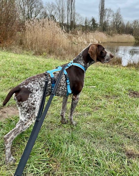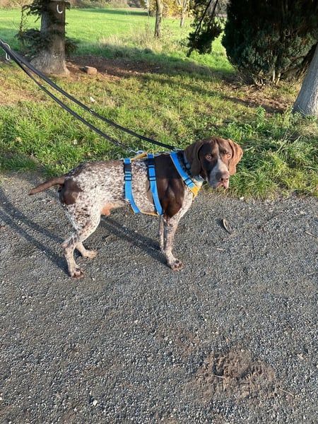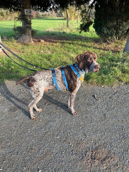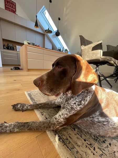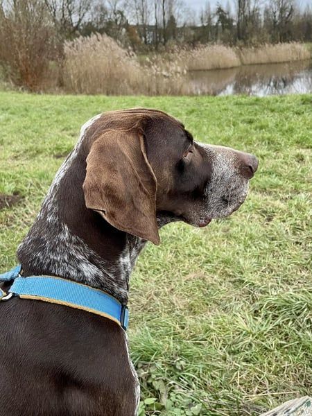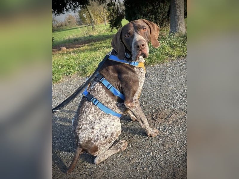 Typisch für den Deutsch Kurzhaar ist Ragnar klug, sensibel und hoch motiviert, Neues zu lernen. Er möchte gefallen, arbeitet aufmerksam mit und versteht neue Situationen erstaunlich schnell. Man spürt, wie sehr er sich seinem Menschen anschließen möchte – ein großes Potenzial für einen loyalen und liebevollen Familienhund.