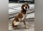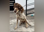 Cheska ist eine wunderschöne braune Hündin mit weißen und braunen kleinen Tüpfelchen.