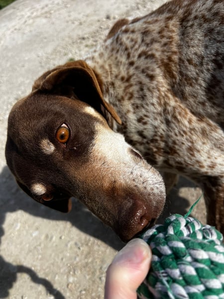 Als Deutsch Kurzhaar bringt Cheska Eigenschaften mit, die gut zu ihrem bisherigen Verhalten passen: Sie ist menschenbezogen, lernwillig, bewegungsfreudig und sensibel. Diese Rasse gilt als intelligent, anhänglich und arbeitsfreudig. Cheska wirkt dabei besonders sanft und freundlich, ohne aufdringlich zu sein. Sie möchte beschäftigt werden, gemeinsam mit ihren Menschen etwas erleben und zugleich eine enge Bindung aufbauen. Sie ist keine Hündin, die einfach nur mitläuft - sie möchte Teil des Alltags und Teil der Familie sein.