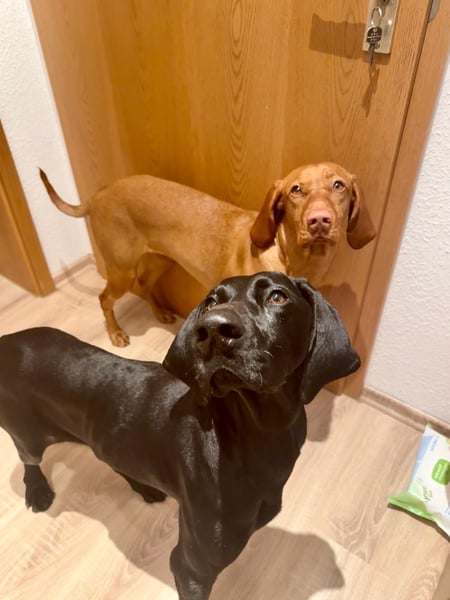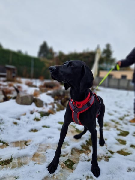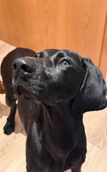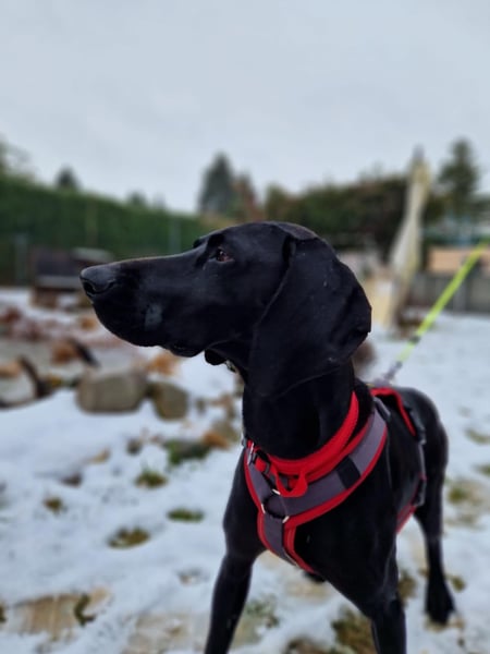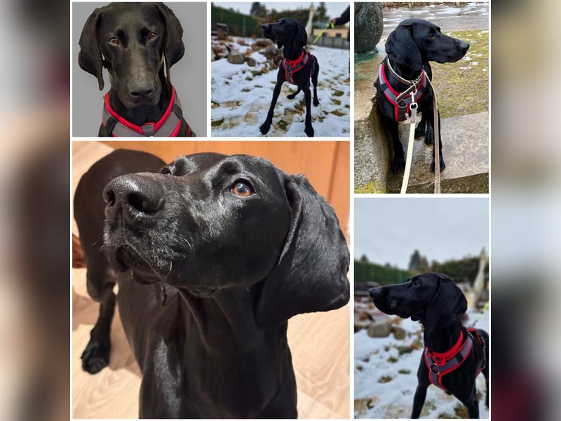 Morena, geboren am 21.05.2022, ist eine wunderschöne schwarze Deutsch-Kurzhaar-Hündin, die zuvor bei einem Jäger lebte und anschließend in ein spanisches Tierheim nach Murcia kam. Seit dem 7. Februar 2026 befindet sie sich in Deutschland und wird als Zweithund und in einer Wohnung gehalten. Morena wurde im Januar 2026 kastriert; die Kastration ist restlos gut verheilt. Morena zeigt sich hier als eine durchweg friedliche, unglaublich liebe und freundliche Hündin.