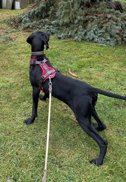 Im Auto fährt Morena ruhig und entspannt mit, legt sich ab und schaut gelegentlich interessiert aus dem Fenster. Draußen zeigt sie – typisch Deutsch-Kurzhaar – Interesse an allem, was sich bewegt, besonders an Vögeln. Sie ist aufmerksam, neugierig und motiviert, braucht aber aufgrund ihrer Unsicherheit in neuen Situationen eine geduldige, souveräne Führung und noch viel Übung und Training. An der Leine zieht sie gelegentlich, doch mit konsequentem, liebevollem Training wird sie sich zu einer zuverlässigen Begleiterin entwickeln. Ihre Lernbereitschaft und ihr Wunsch, mit dem Menschen zusammenzuarbeiten, sind deutlich spürbar.