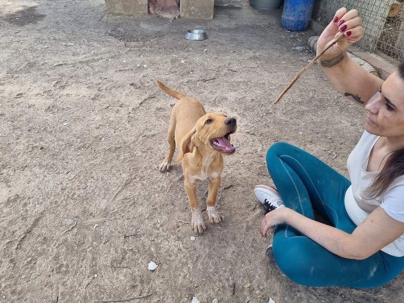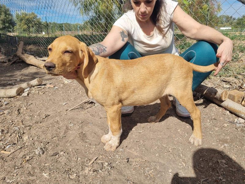 Dardo ist ein hübscher, kräftiger Hundebub mit hellbraunem Fell, der mit seinen großen Pfoten noch nicht so sehr wie ein zukünftig selbstständiger und ausdauernder Jagdhund wirkt, sondern eben eher noch sehr verspielt und tapsig. Das ist er auch. Er liebt es mit seinen Geschwistern zu spielen, aber besonders gerne ist er bei einer Bezugsperson. Die hat er im Tierheim nur bedingt, deshalb ist Dardo auf der Suche nach seinem/seinen Menschen, mit denen er als neugieriger, sensibler, bewegungsfreudiger Rüde nicht nur kuscheln möchte, sondern besonders gerne auch „Abenteuer“ in der Natur erleben will. Er wird schnell lernen, wie schön es ist ein echter (Jagd)Hund sein zu dürfen, zu schnüffeln, zu laufen und zu lernen. All das kennt er noch nicht. Wie ausgeprägt der Jagdtrieb bei ihm ist, ist nicht bekannt. So wie auch leider nichts zu seiner Herkunft bekannt ist.
