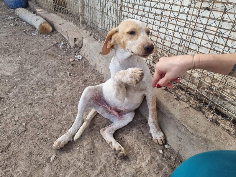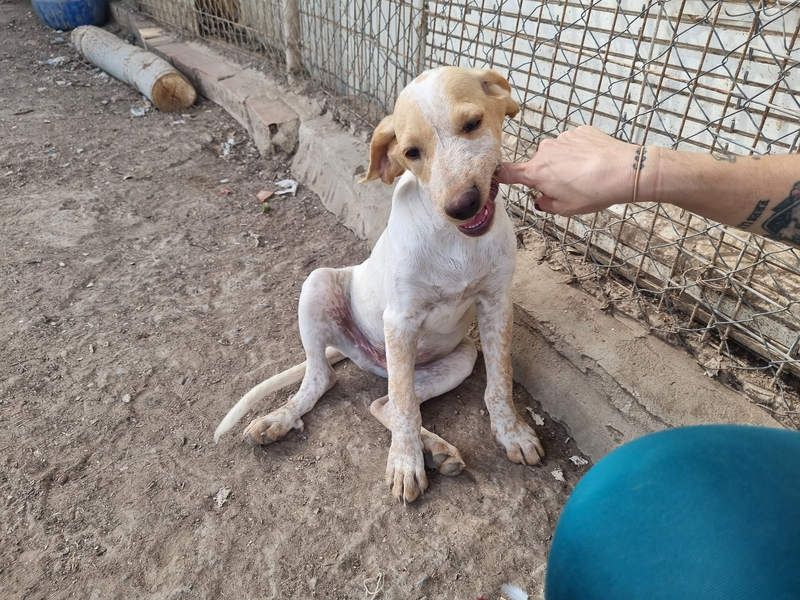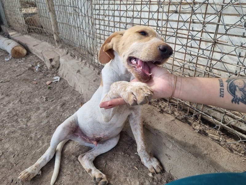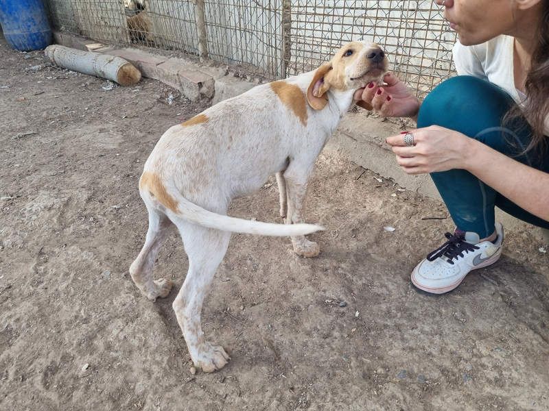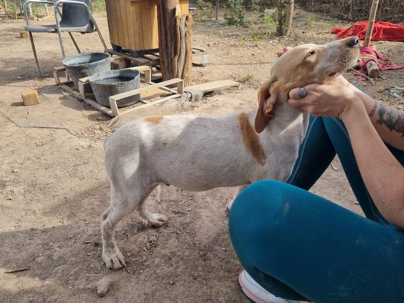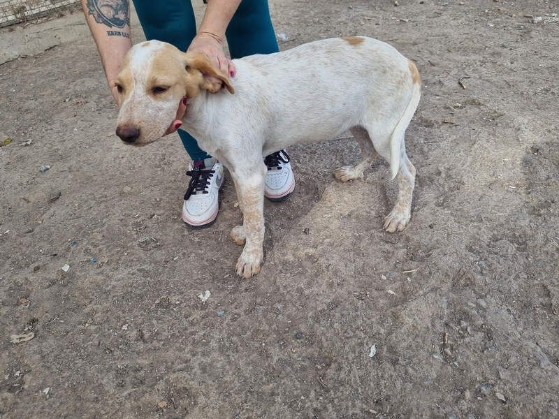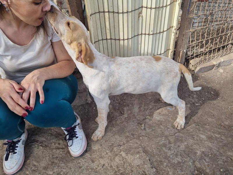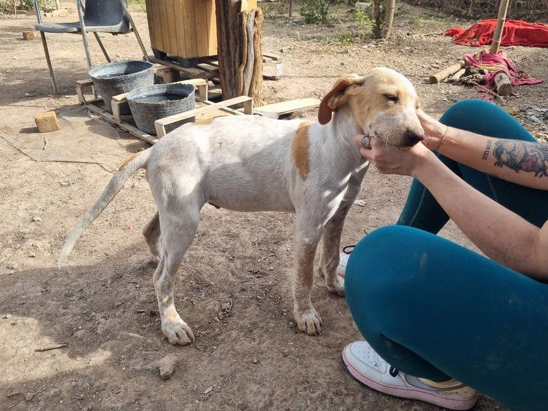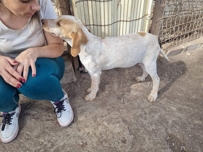 Plomo ist ein hübscher, kräftiger Hundebub, etwas zierlicher als sein Bruder Dardo, mit hellbraunen Fellzeichnungen auf ansonsten weißem Fell und braunen Schlappöhrchen. Er wirkt noch nicht so sehr wie ein zukünftig selbstständiger und ausdauernder Jagdhund, sondern eher noch sehr verspielt und tapsig. Das ist er auch. Er liebt es mit seinen Geschwistern zu spielen, aber besonders gerne ist er bei einer Bezugsperson. Die hat er im Tierheim nur bedingt, deshalb ist Plomo auf der Suche nach seinem/seinen Menschen, mit denen er als neugieriger, sensibler, bewegungsfreudiger Rüde nicht nur kuscheln möchte, sondern besonders gerne auch „Abenteuer“ in der Natur erleben will. Er wird schnell lernen, wie schön es ist ein echter (Jagd)Hund sein zu dürfen, zu schnüffeln, zu laufen und zu lernen. All das kennt er noch nicht. Wie ausgeprägt der Jagdtrieb bei ihm ist, ist nicht bekannt. So wie auch leider nichts zu seiner Herkunft bekannt ist.