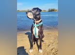 Der ca. 85 cm große und 53 kg schwere Manny ist ein liebevoller, verschmuster, sensibler und rassetypisch wachsamer Hund. Er lebt derzeit harmonisch mit einer Katze zusammen. Mit Artgenossen versteht er sich leider nicht und sollte deshalb weiter Einzelprinz bleiben. Kommen ihm andere große Hunde entgegen, neigt er zum Pöbeln und wird daher aktuell am Halti geführt. Hier benötigt es also noch weiteres Training. Mannys Leinenführigkeit ist ansonsten gut und auch die gängigen Grundkommandos beherrscht er. Bei schnellen Bewegungsreizen zeigt er Jagdtrieb. Zuhause kommt Manny selbstständig zur Ruhe und kann problemlos mehrere Stunden alleine bleiben. Im Auto fährt er ebenfalls entspannt mit.