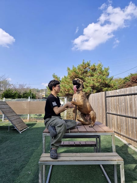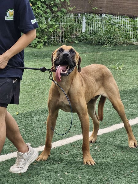 Chowon hat keine Angst vor lauten Autos oder Motorräder. Er würde gut in der Stadt laufen, aber toll wäre natürlich ein Haus mit Garten. Er lässt sich gerne berühren und sogar umarmen, was viele Hunde nicht mögen. Beim Spazierengehen dreht er sich nach Dir um, er sucht Deine Nähe und ist wohlerzogen und so liebevoll. Er ist ein großer interessierter Schnüffler beim Spazierengehen. Alles ist interessant für ihn, er ist so aufmerksam und lernwillig. Mit ihm kann man viel Freude haben, ihm Kunststückchen beibringen oder nur ganz still sitzen, um ihn zu kraulen. Er wird sich gerne zu Dir legen und nichts fordern. Er ist sehr sozial mit anderen Hunden, selbst wenn diese etwas ruppig sind, bleibt er gelassen und duldsam. Er kann gerne als Zweithund angeschafft werden. Katzen ignoriert er einfach und er ist da ganz gelassen. Er ist ein Schatz auf vier Pfoten. Chowon wurde gerade erfolgreich operiert. Er hatte eine Schleimbeutelentzündung. Das kommt bei den großen Hunden vor, wenn sie lange im Tierheim sind, denn dort müssen sie auf hartem Untergrund leben. Das bekommt ihren Knochen gar nicht gut. Daher wird es Zeit, dass Chowon sein zu Hause für immer findet.