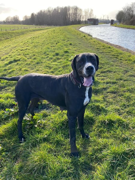 Sky ist eine wunderschöne 4-jährige Deutsche Dogge. Sie ist 81 cm groß, ihr Fell ist schwarz mit weißer Brust und weißen Pfoten. Sie ist lebensfroh, anhänglich und verspielt. Sie liebt Bewegung, spielt gern und ist immer für gemeinsame Unternehmungen zu haben. Trotz ihrer Energie ist sie sehr verschmust und sucht die Nähe ihrer Menschen.