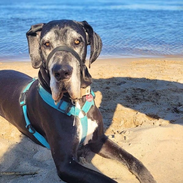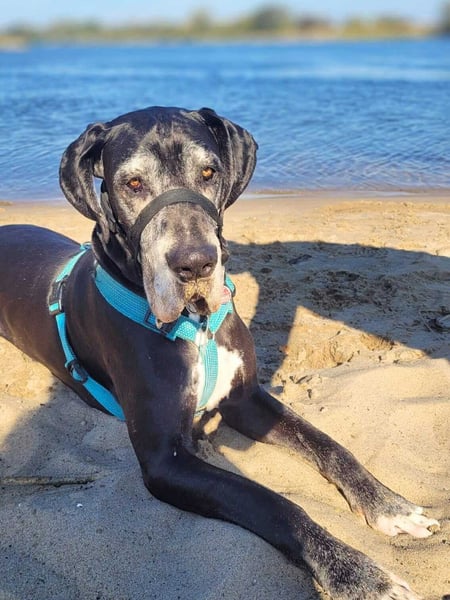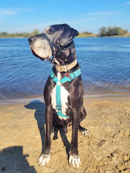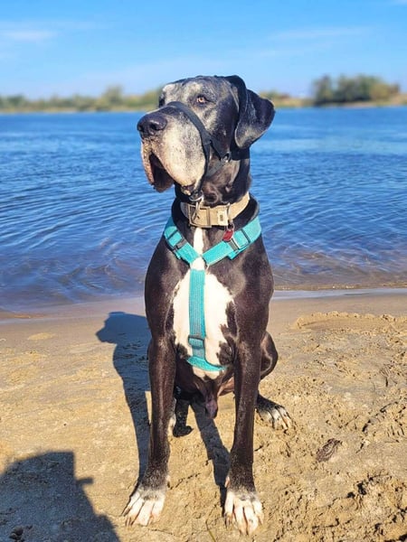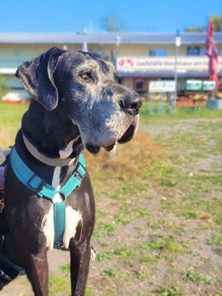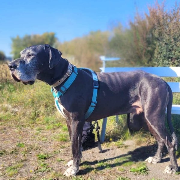 Der ca. 85 cm große und 53 kg schwere Manny ist ein liebevoller, verschmuster, sensibler und rassetypisch wachsamer Hund. Er lebt derzeit harmonisch mit einer Katze zusammen. Mit Artgenossen versteht er sich leider nicht und sollte deshalb weiter Einzelprinz bleiben. Kommen ihm andere große Hunde entgegen, neigt er zum Pöbeln und wird daher aktuell am Halti geführt. Hier benötigt es also noch weiteres Training. Mannys Leinenführigkeit ist ansonsten gut und auch die gängigen Grundkommandos beherrscht er. Bei schnellen Bewegungsreizen zeigt er Jagdtrieb. Zuhause kommt Manny selbstständig zur Ruhe und kann problemlos mehrere Stunden alleine bleiben. Im Auto fährt er ebenfalls entspannt mit.