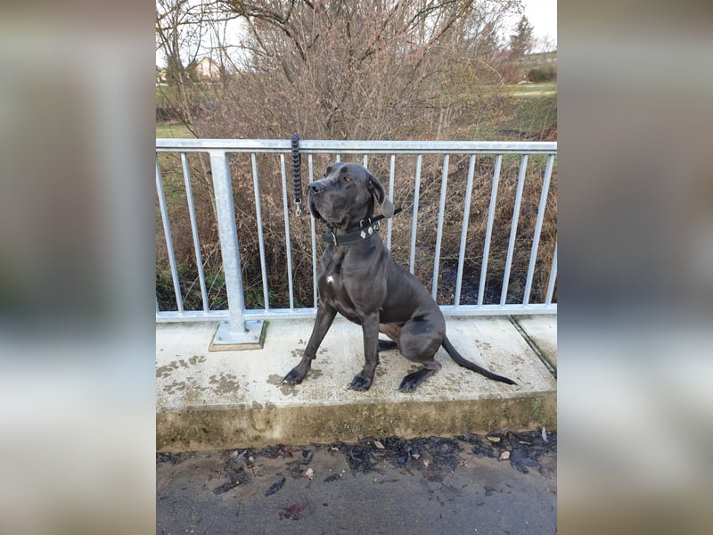 schweren Herzens haben wir uns entschieden, für unsere wundervolle Doggen-Mama (5 Jahre alt) ein neues, ruhiges Zuhause zu suchen. Sie ist der Inbegriff einer "sanften Riesin": unglaublich anhänglich, verschmust und eine Seele von einem Hund.
