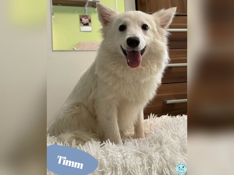 Timm kam zusammen mit seinen sechs Brüdern aus einem Tierheim, nachdem er vermutlich von illegalen Züchtern dort abgegeben wurde. Er ist grundsätzlich freundlich, braucht aber etwas Selbstvertrauen und Geduld, um sich langsam zu öffnen.