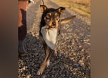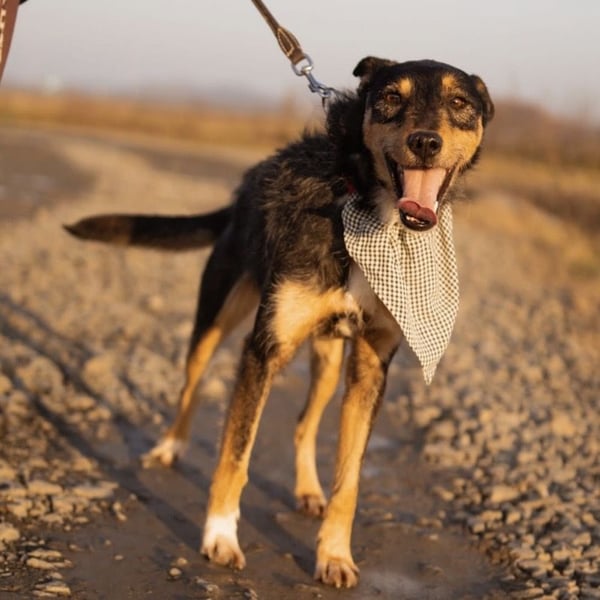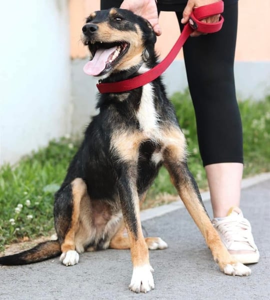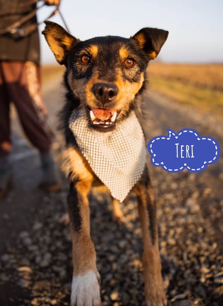 Teri wurde in Februar 2023, mitten im Wald neben einer abgelegenen Straße ausgesetzt. Kaum jemand fährt dort entlang, doch er wurde von jemanden gesehen und Tierschützer wurden informiert. Eine gute Woche hat es gedauert bis Teri gefunden worden ist. Jeden Tag sind Tierschützer hingefahren, haben gerufen und immer wieder essen an einer Stelle gelassen. Teri wäre sonst wahrscheinlich verhungert. Als Tierschützerin Kristina dann endlich Teri selbst gesichtet hätte, war sie richtig erleichtert. Teri war total ungepflegt, vernachlässigt und scheu, aber er merkte dass sie diejenige ist, die jeden Tag Futter bringt und fasste sofort Vertrauen. Er war erstmal schüchtern, doch dann freute er sich dass sie da ist und sie könnte ihn sogar sofort locken und anfassen.