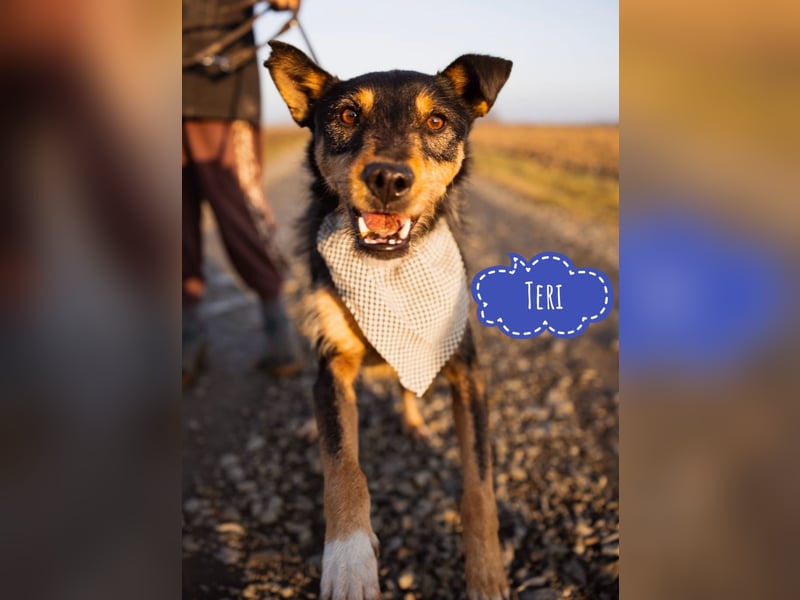Teri ist ca. 4 Jahre alt (09.01.2022), wiegt ca. 20kg und ist 52cm groß. Er ist sicherlich ein Terrier-Mix.