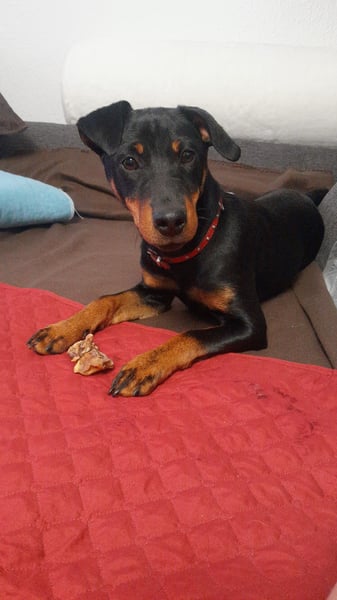 Bailey geht bereits passabel an der Leine, benimmt sich im Haus, kennt es mit ins Büro zu kommen und kann auch schon einige Stunden alleine bleiben.