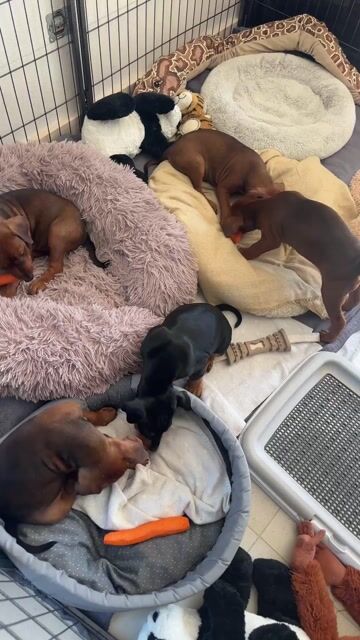 Es wurden 2 prächtige rote Hündinnen, 2 rote Rüden und eine 1 schwarz-rote Hündin geboren.