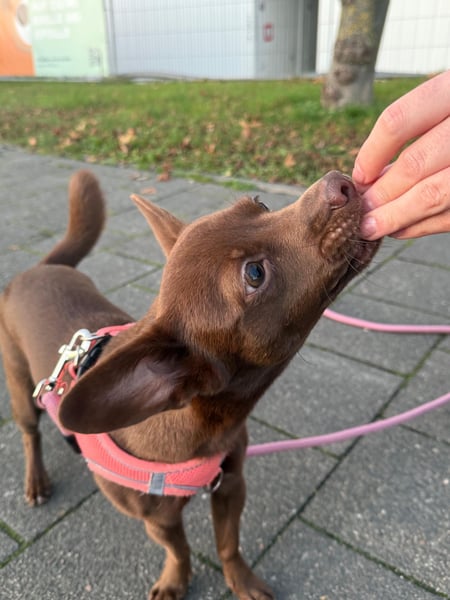Natürlich gibt es auch ein paar Baustellen, sie bellt andere Hunde an, weil sie gerne zu ihnen möchte (im freundlichen Sinne, Peanut zeigt sich wahnsinnig aufgeschlossen und freundlich), sie zieht noch etwas an der Leine und kann noch nicht alleine bleiben, aber mit ein bisschen Training ist das alles nichts, was sich nicht in den Griff bekommen lässt und wir arbeiten auch nebenbei daran. Man muss sich bewusst sein, das sie ein junger Hund ist, der noch lernt, aber großes Potenzial hat!