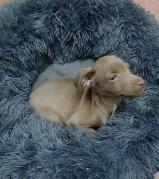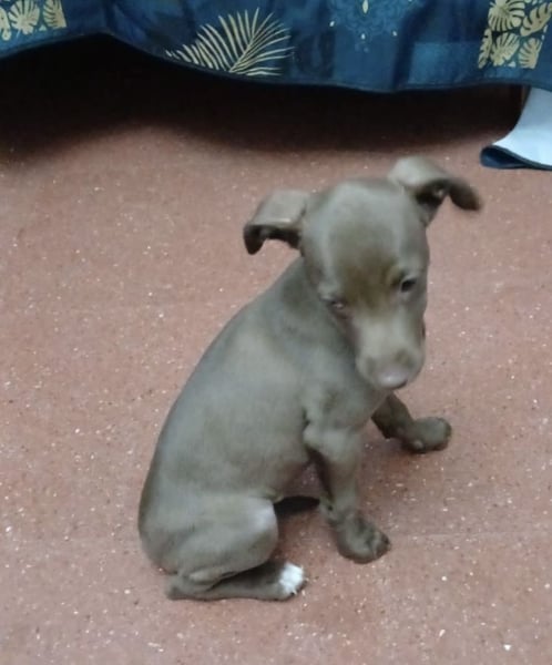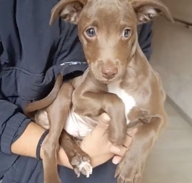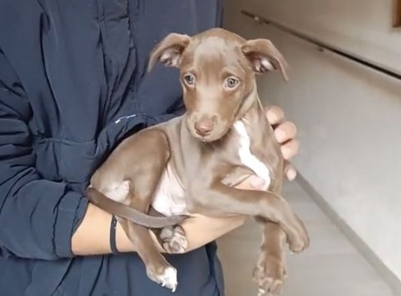 Dieser kleine Rüde ist noch ganz jung und dabei, die Welt für sich zu entdecken. Er zeigt sich welpentypisch neugierig, verspielt und offen gegenüber Menschen – einfach ein kleiner Sonnenschein.