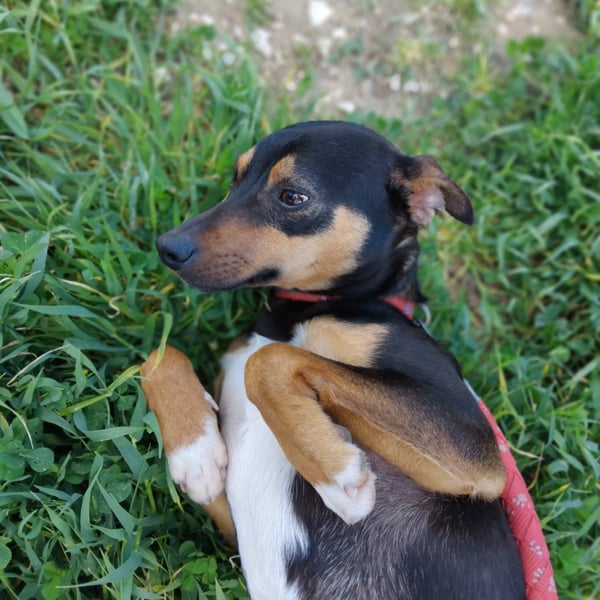 Typisch für einen Pinscher bringt auch Donut wahrscheinlich einige schöne Eigenschaften dieser Rasse mit: Pinscher gelten als klug, aufmerksam, lebhaft und eng an ihre Menschen gebunden. Sie sind oft feine Beobachter, lernen schnell und möchten körperlich wie auch geistig beschäftigt werden. Gleichzeitig sind sie häufig sensibel und reagieren stark auf die Stimmung und Führung ihrer Bezugspersonen. Bei Donut zeigt sich diese sensible, menschenbezogene Seite besonders deutlich. Da er ein Mischling ist, müssen natürlich nicht alle klassischen Rassemerkmale eins zu eins ausgeprägt sein - vieles spricht aber dafür, dass in ihm ein aufgeweckter, feiner und bindungsstarker kleiner Begleiter steckt.