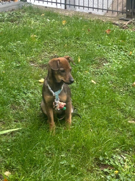 Die kleine Emma ist ein bezaubernde, fünf Monate alter deutscher Pinscher. Sie ist bereits geimpft und sucht nun ein liebevolles und fürsorgliches Zuhause, in dem sie ihre neue Familie mit ihrer fröhlichen Art Bereichen kann. Bei Fragen kannst du dich gerne unter 017661987667 melden