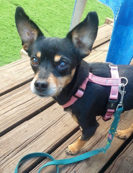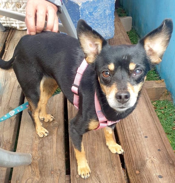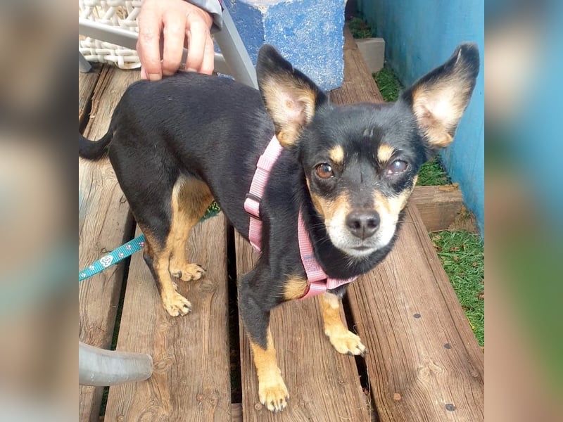 BELTZA ist eine zarte Pinscher-Mix Hündin, geboren am 07.09.2022, etwa 25 cm klein und mit ihren 4 Kilo ein echtes Leichtgewicht – aber voller Lebensfreude und Liebe. Ihr Start ins Leben war nicht ganz einfach, denn sie lebte zusammen mit vier weiteren Pinschern bei einer Frau, die aufgrund psychischer Probleme nicht mehr in der Lage war, sich ausreichend um die Hunde zu kümmern. So durfte BELTZA gemeinsam mit den anderen gerettet werden und hat nun die Chance auf ein besseres Leben.