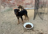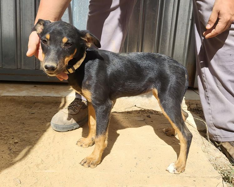 Das Tierheim erhielt in seiner WhatsApp Gruppe ein Foto von einem jungen Hund, der vor der Tür eines verlassenen Lagerhauses am Stadtrand von Andujar saß. Unsere Freiwillige fand den Ort schnell und den Hund dazu. Als sie versuchte sich ihm zu nähern, lief er hinter das Gebäude und quetschte sich durch ein Loch in einem Metallzaun. Unsere Freiwillige suchte nun ihrerseits eine Möglichkeit in das Gebäude zu kommen. Dort fand sie zu ihrer Überraschung noch einen zweiten Hund vor. Sie nahm beide Hunde mit und brachte sie zunächst in die Tierklinik, um zu überprüfen ob die beiden okay waren.