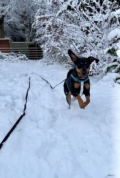 Kim ist eine 4-jährige Deutsche-Pinscher-Mischlingshündin, gechipt und vollständig geimpft. Sie ist eine sehr menschenbezogene, freundliche und kluge Hündin, die schnell eine enge Bindung zu „ihren“ Menschen aufbaut.