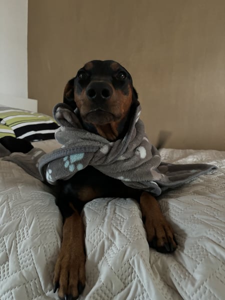 • Drinnen zeigt er seine sanfte Seite: er ist verschmust, schläft gerne in der Nähe seiner Menschen und liebt es, sich unter einer Decke einzukuscheln.