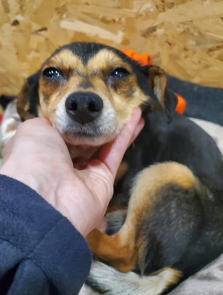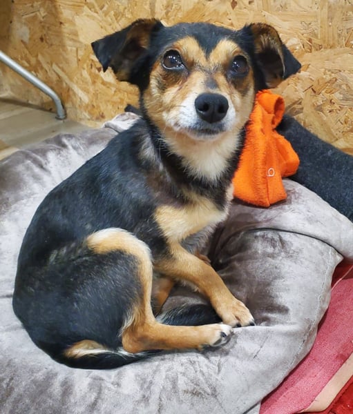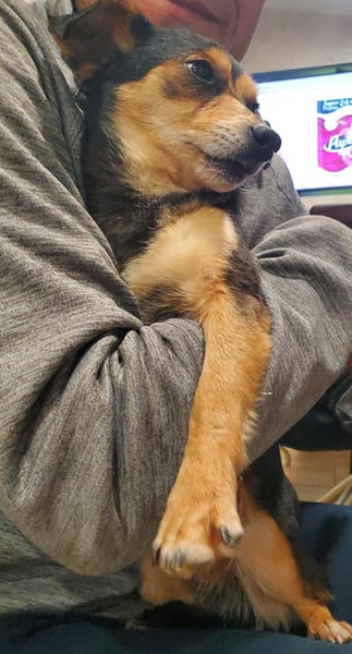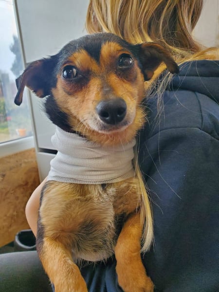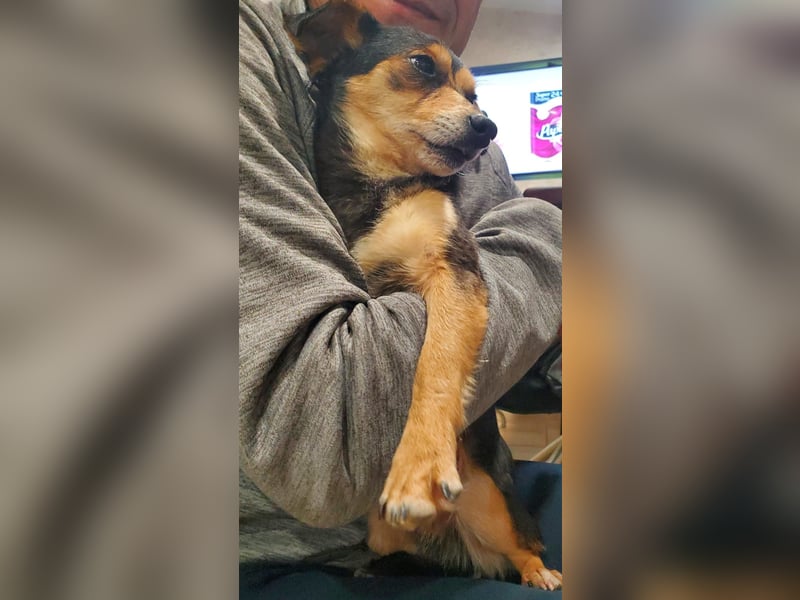 Der kleine Mann wiegt gerade mal 3 KG, geschätzt 5 Jahre alt. Er ist ein Pinscher / Pinscher Mix.