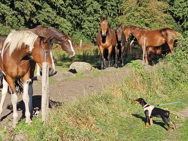 Sie kennt andere Hunde, die Tiere im Stadtpark und auch Pferde auf der Koppel. Alle wurden neugierig beobachtet.