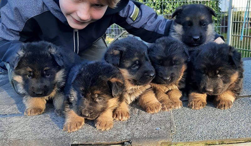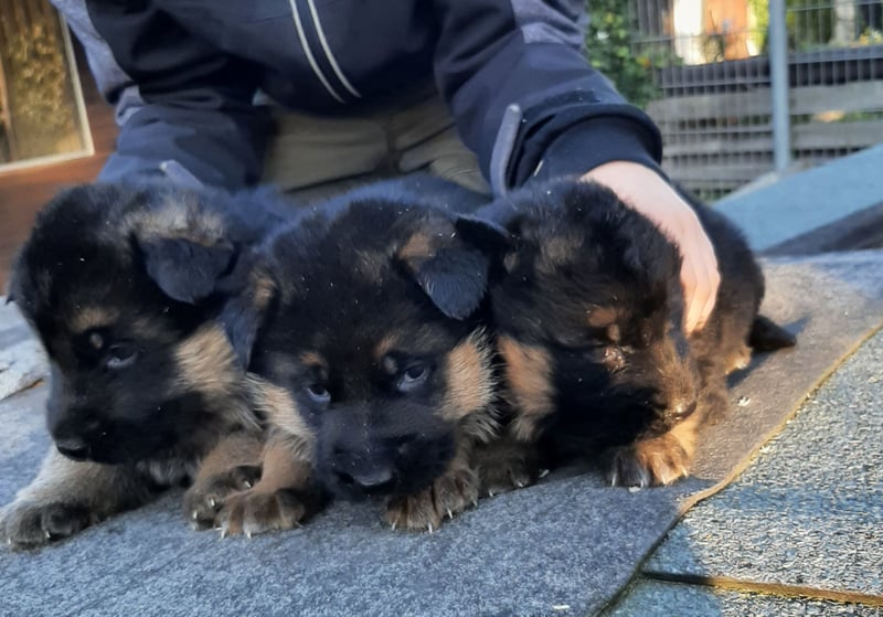 Ich verkaufe ab Dezember 6 schwarz-braune DSH-Welpen. Es sind 3 Rüden und 3 Hündinnen. Sie stammen aus einer sehr vielversprechenden Verpaarung. Die Eltern sind natürlich gesund und HD und ED-frei. Die Welpen haben einen geraden Rücken und sind sehr neugierig und verspielt. Sie werden bei uns an viele Umwelteinflüsse gewöhnt und lernen ihre Umwelt jeden Tag ein bisschen mehr kennen.