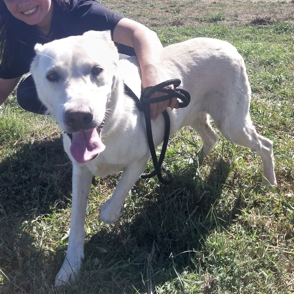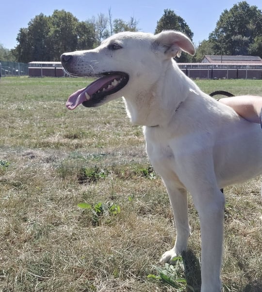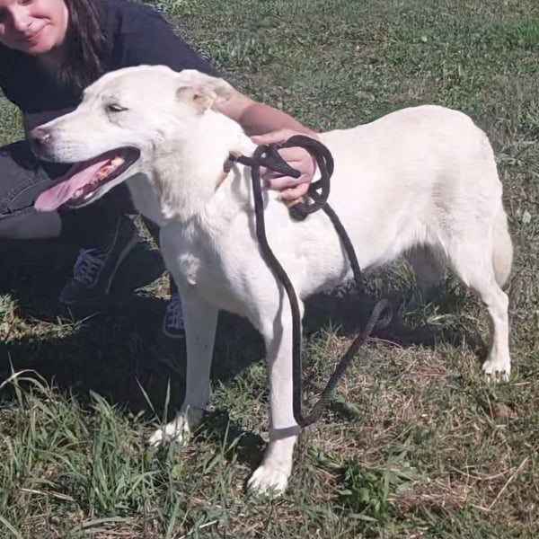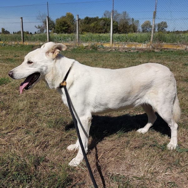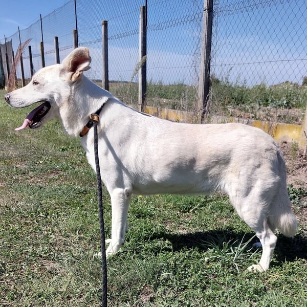 Nancy ist ein Mädchen, laut Tierarztschätzung ca. 5,5 Jahre alt (geb. 15.01.2020). Sie wiegt 25 kg, ist 57 cm groß und eine wunderschöne weiße Schäferhündin.