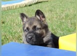 Dunkelgraue Hündin mit braunen Abzeichen, freundliches, aufgeschlossenes Mädchen