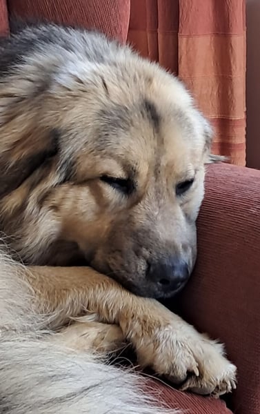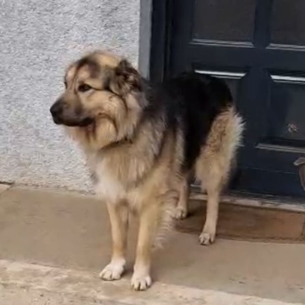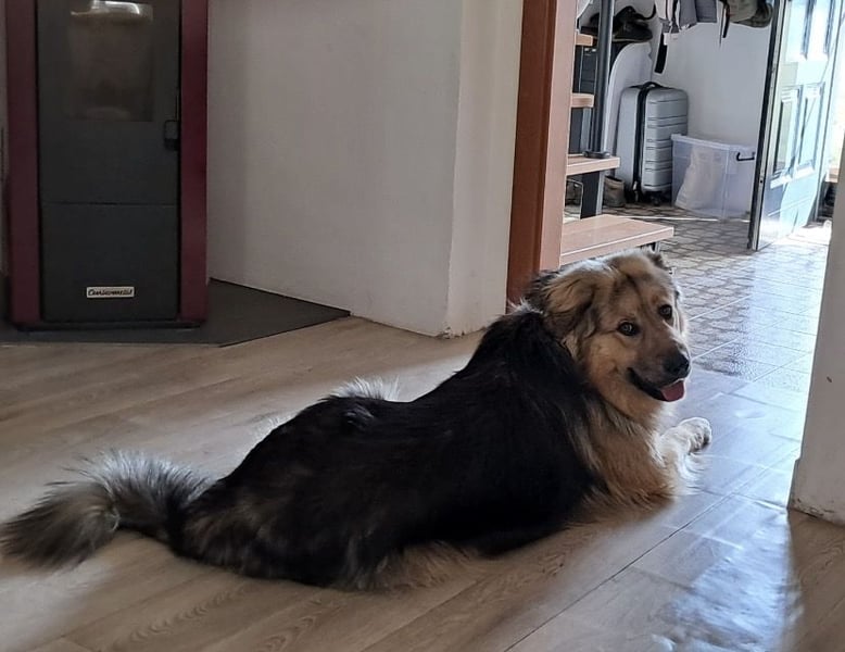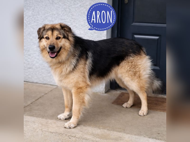 Aron ist ein Rüde, laut Tierarztschätzung ca. 2 Jahre alt (geb. 01.12.2023). Er hat eine Schulterhöhe von ca. 65 cm und wiegt etwa 35 kg. Er wurde nicht gewogen, könnte auch etwas mehr wiegen. Vermutet wird ein Deutscher Schäferhund / Leonberger-Mischling.