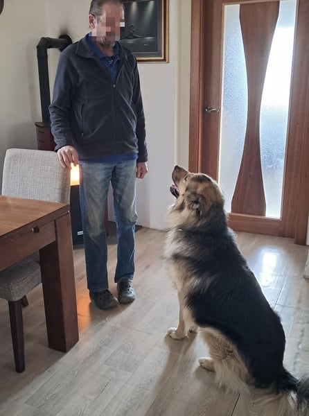 Wird ihm allerdings langweilig, fängt er an zu winseln und „klaut“ Dinge vom Tisch oder der Anrichte, trägt sie auf seine Decke und legt sich darauf. Besonders Schuhe sind sehr beliebt – diese werden jedoch nicht zerstört. Papier, Kartons oder Eierkartons hingegen werden begeistert in kleinste Stücke zerlegt. Alles ein Zeichen dafür, dass er nicht ausgelastet ist. Er will rennen, spielen und toben - das alles vermisst er sehr.