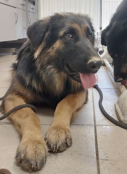 Tarja ist laut Tierarztschätzung ca. 2 Jahre alt (geb. 25.06.2023), wiegt 27,2 kg und ist 70 cm groß. Vermutet wird ein Deutscher Schäferhund, eventuell mit Anteil von Sarplaninac.