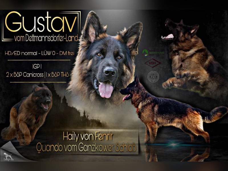 Gustav vom Dettmannsdorfer-Land ist ein sehr ausgeglichener Rüden. Er besitzt die IGP1 und ist für 26/27 gekört.
