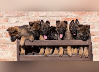 Aus unseren Würfen erwarten wir vielversprechende, aufgeweckte, pigmentstarke deutsche Schäferhund Welpen mit ausgeprägtem Fress,- und Spieltrieb, immer aus inzuchtfreier, gesundheitlich uneingeschränkter, leistungsorientierter Verpaarung, geeignet sowohl für Familie, Hundesportsport, Diensthundewesen als auch für den Rettungs,- und Therapiehundebereich.
