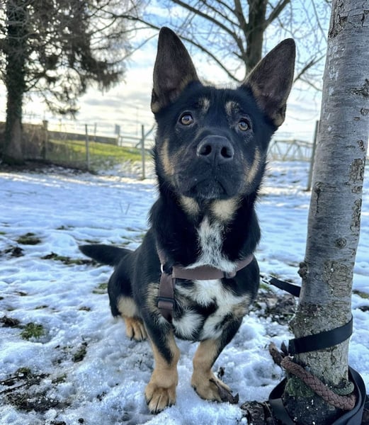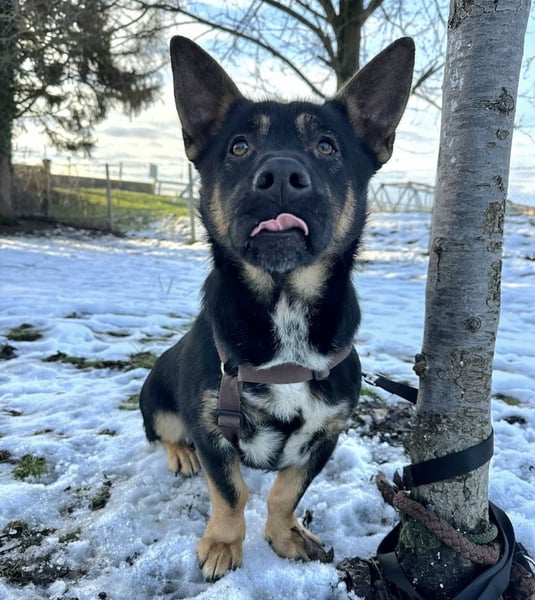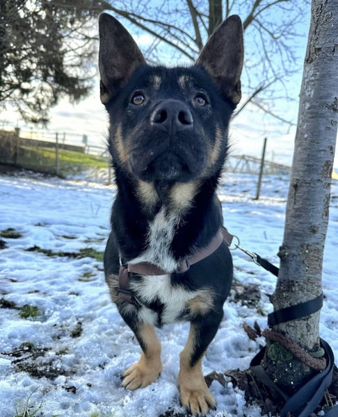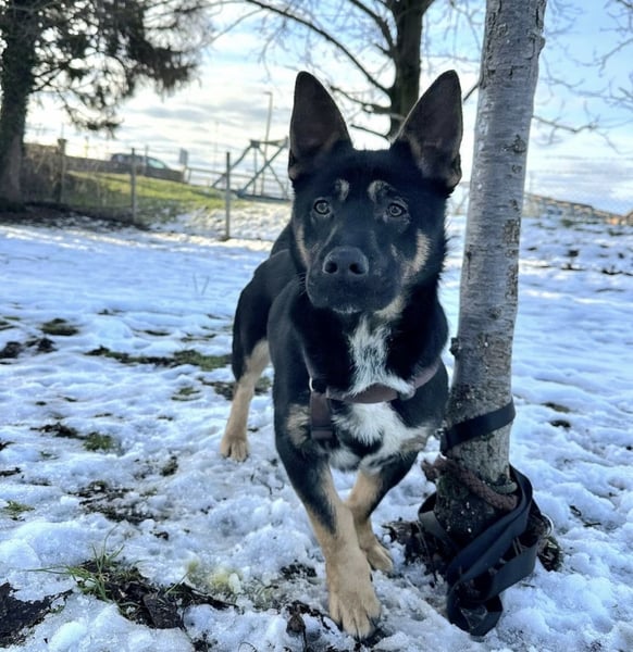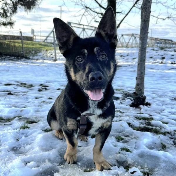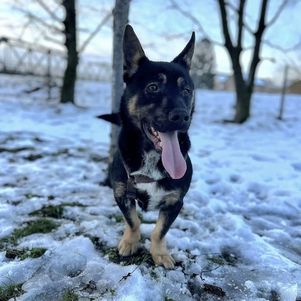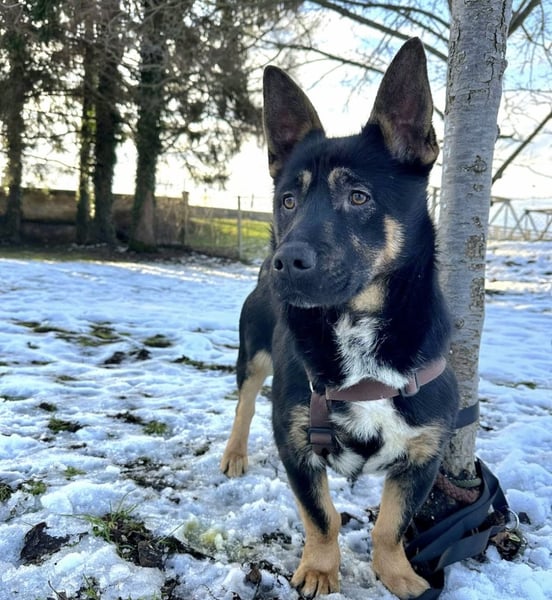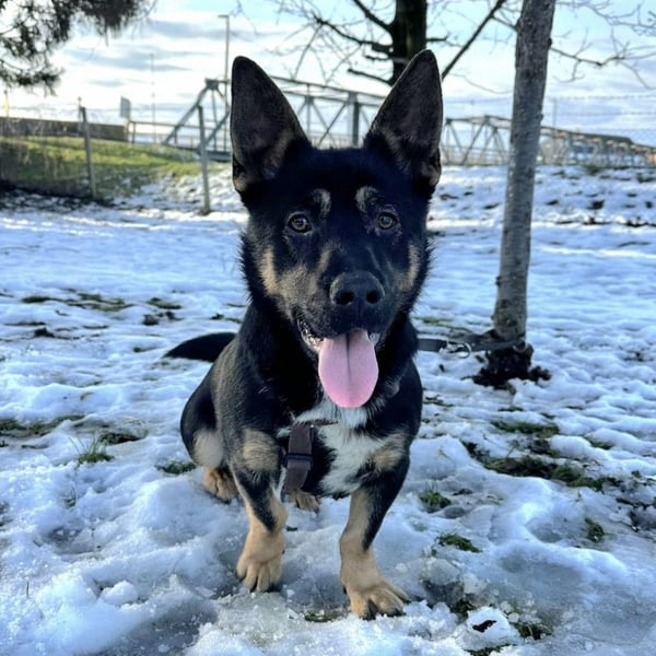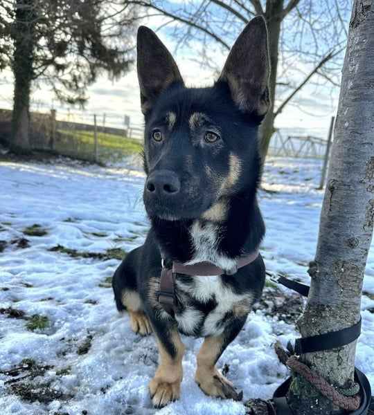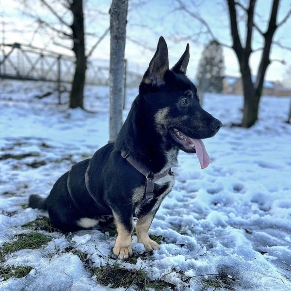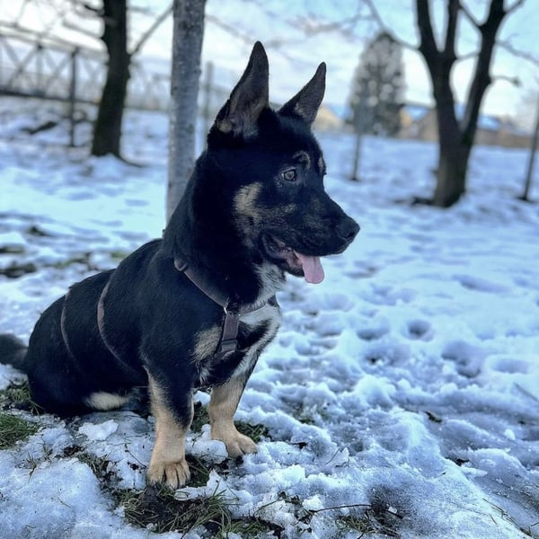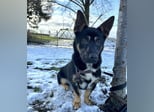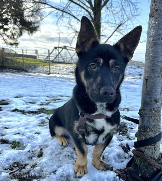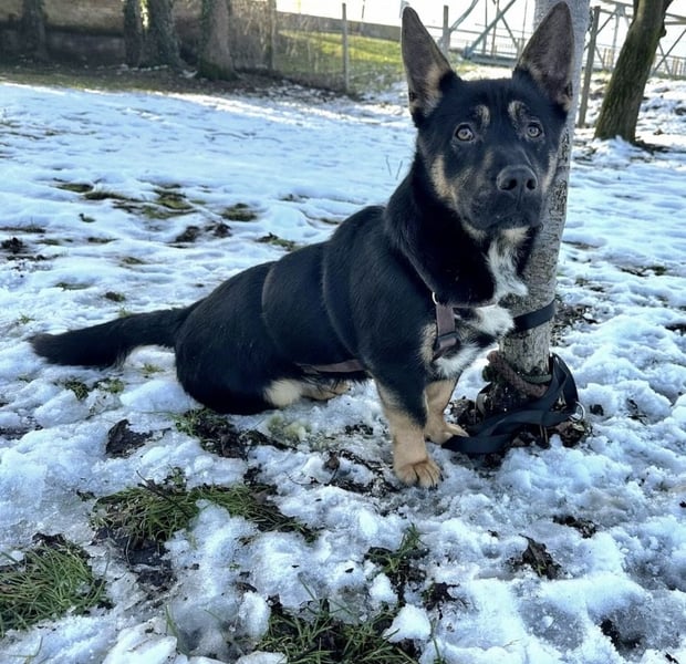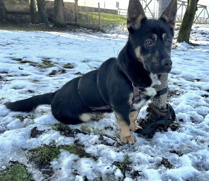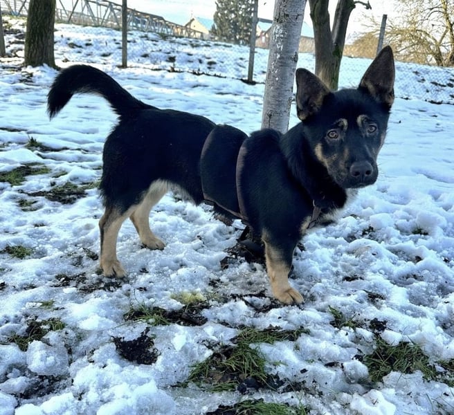 Shep ist ein Bub, laut Tierarztschätzung ca. 2 Jahre alt (geb. 24.01.2024), wiegt 20 kg und ist 35 cm groß. Vermutet wird tatsächlich ein Schäferhund-Dackel-Mischling.