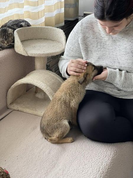 Elsa und ihre sieben Geschwister wurden auf einem Firmengelände geboren. Der Besitzer war einverstanden, dass unsere rumänische Tierschützerin Monika die Mama kastrieren lässt und die verbleibenden vier Welpen mitnimmt. Vier der Geschwister wurden von Einheimischen adoptiert.