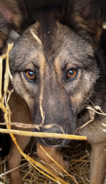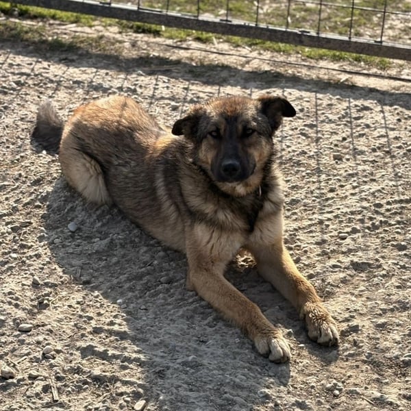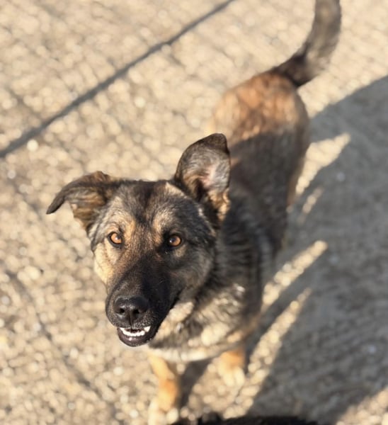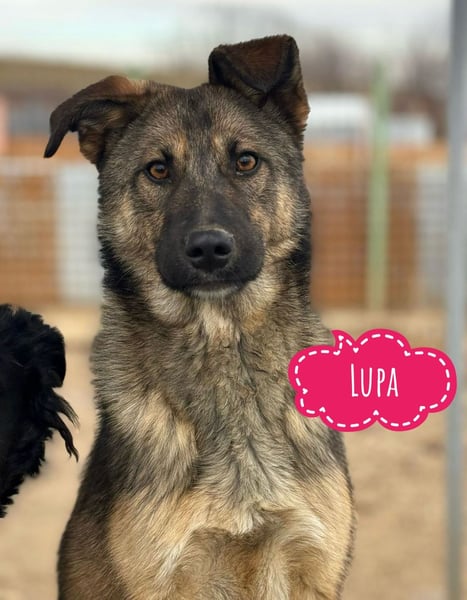 Lupa ist ein Mädchen, sie ist laut Tierarztschätzung ca. 1 Jahr alt (geb. 02.02.2025), wiegt 19kg und ist 58cm groß. Vermutet wird ein Deutscher Schäferhund Mischling, jedoch deutlich zierlicher gebaut.